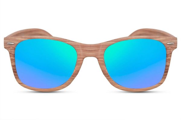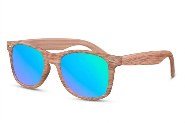 Lunettes effet miroir style Wayfarer en bois